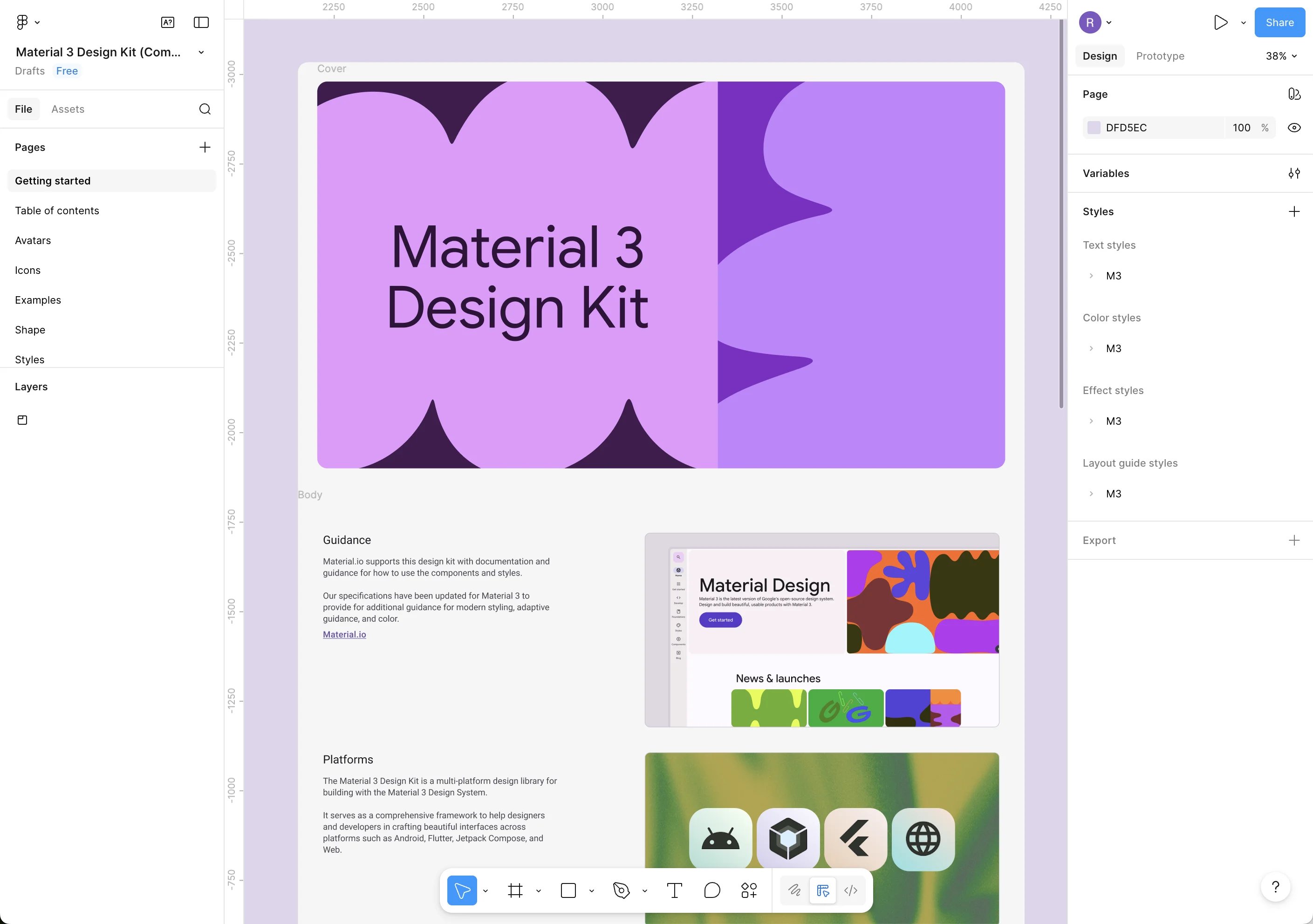 The broader interface makes the point even more clearly: Figma is built around pages, styles, variables, and reusable systems. That's a huge advantage for product teams and a big reason Canva feels easier for everyone else.