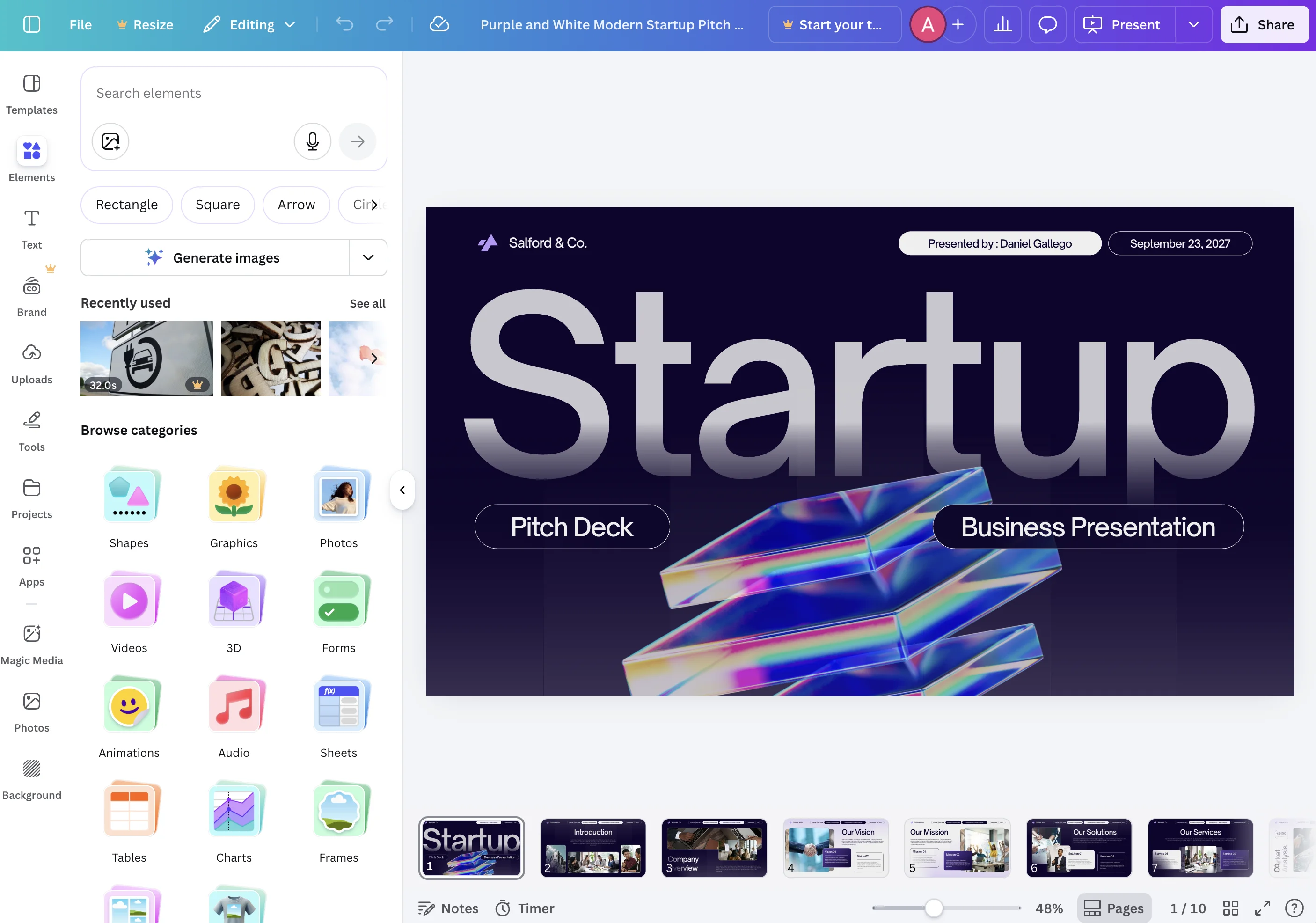 | AI generation | Full presentations from a topic or content | Magic Design generates starting points |