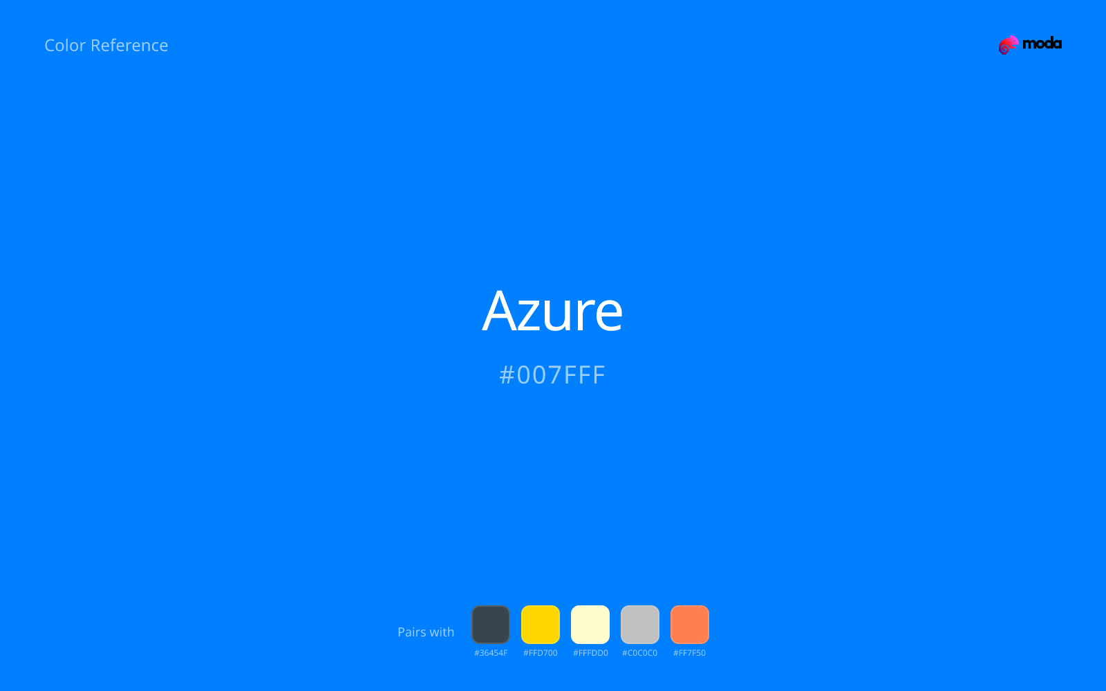 Azure is often associated with clarity, speed, and cloud-era technology. Compared with pure blue (#0000FF), it tends to read as slightly lighter, more radiant, and less "default primary."