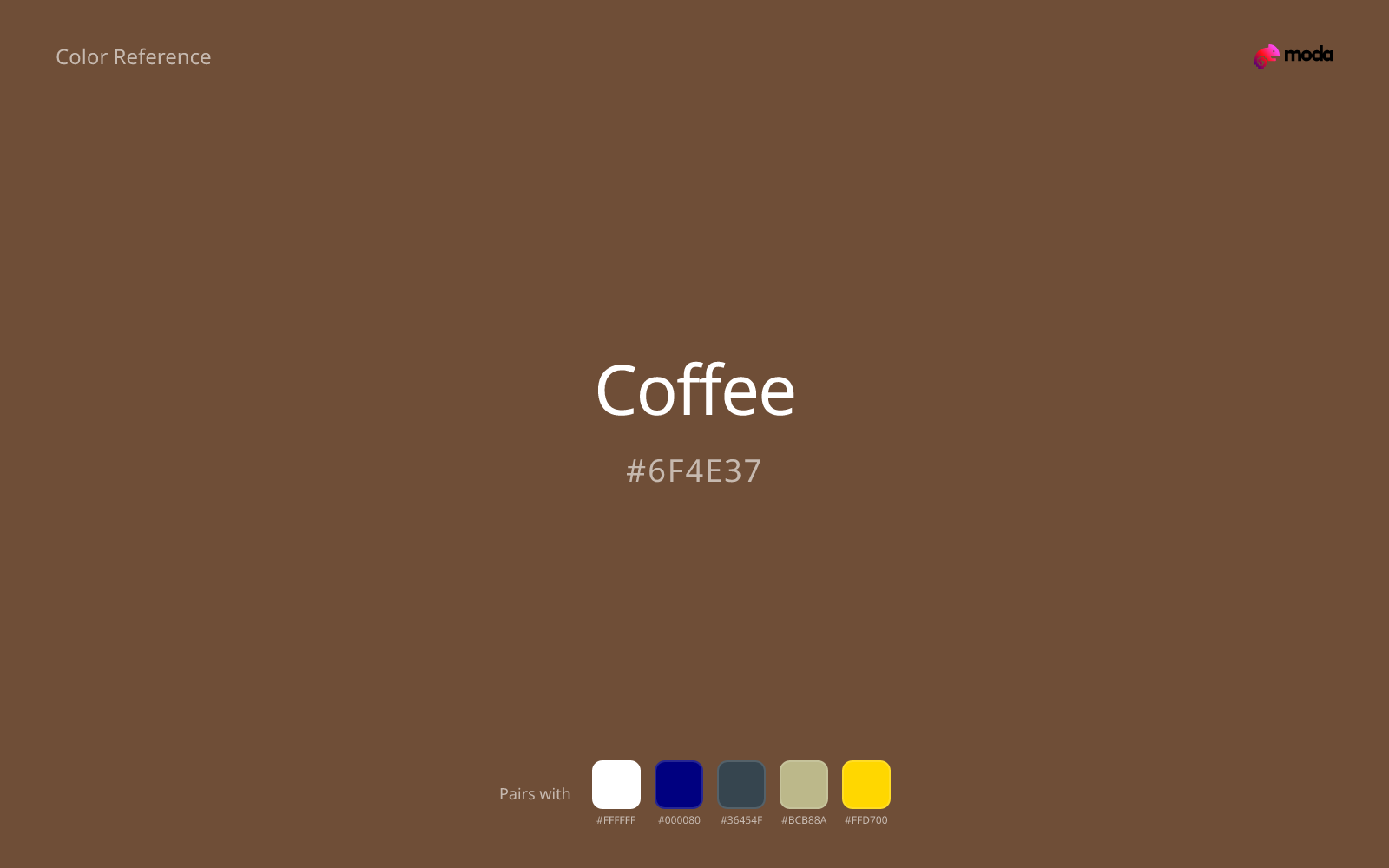 Pairing coffee with white preserves readable hierarchy while keeping the swatch itself as the clear focal color.