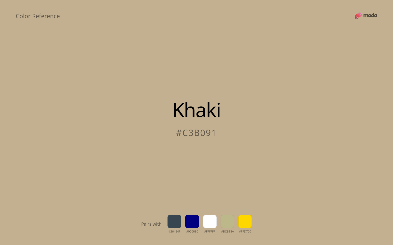 - •Khaki works as a primary accent or highlight color — bright enough to draw attention but check contrast carefully if using it for text on white backgrounds.