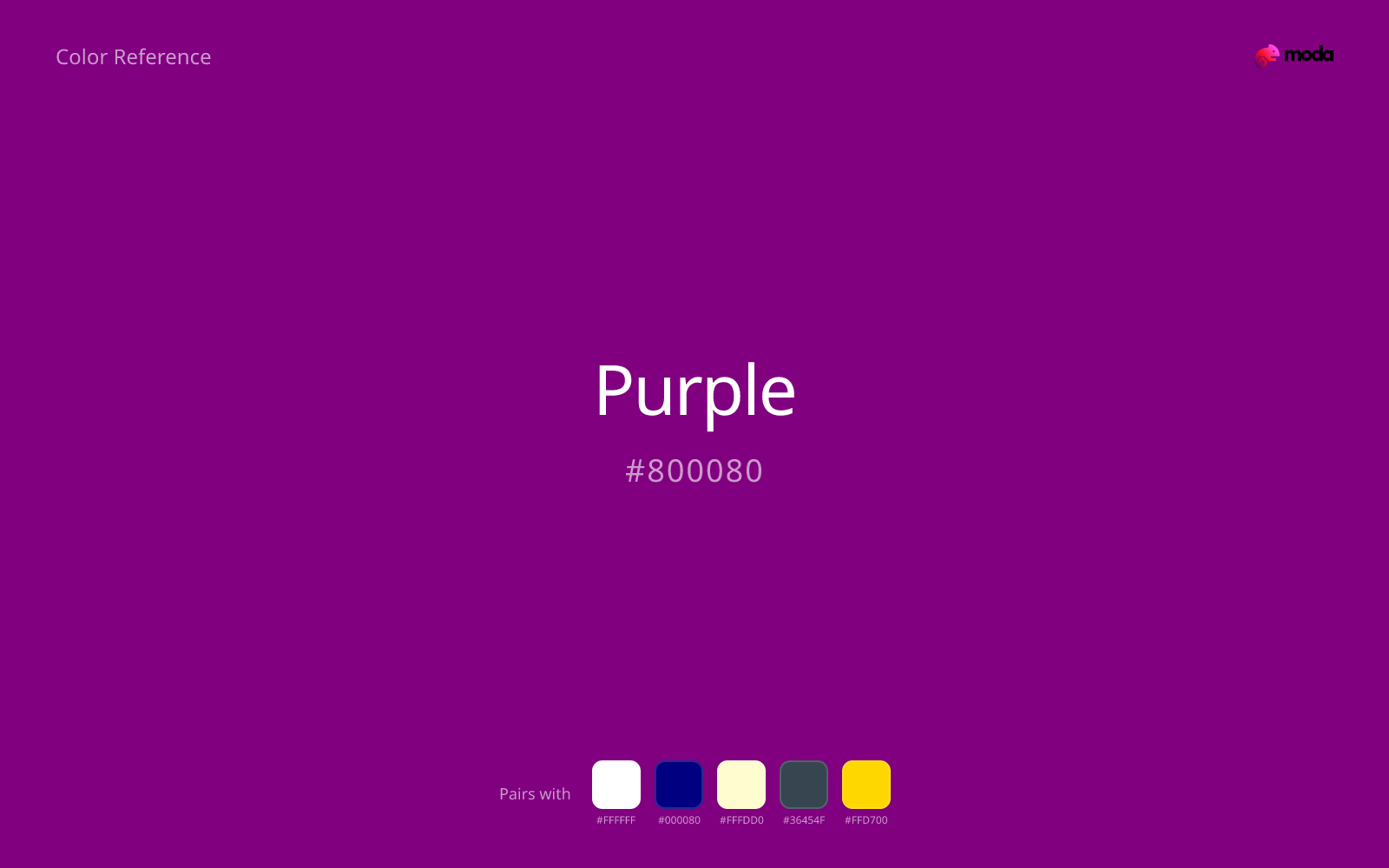 Purple has enough depth to anchor a layout while still reading as a color, which makes it useful for dark section blocks, headlines, and heavier accents.