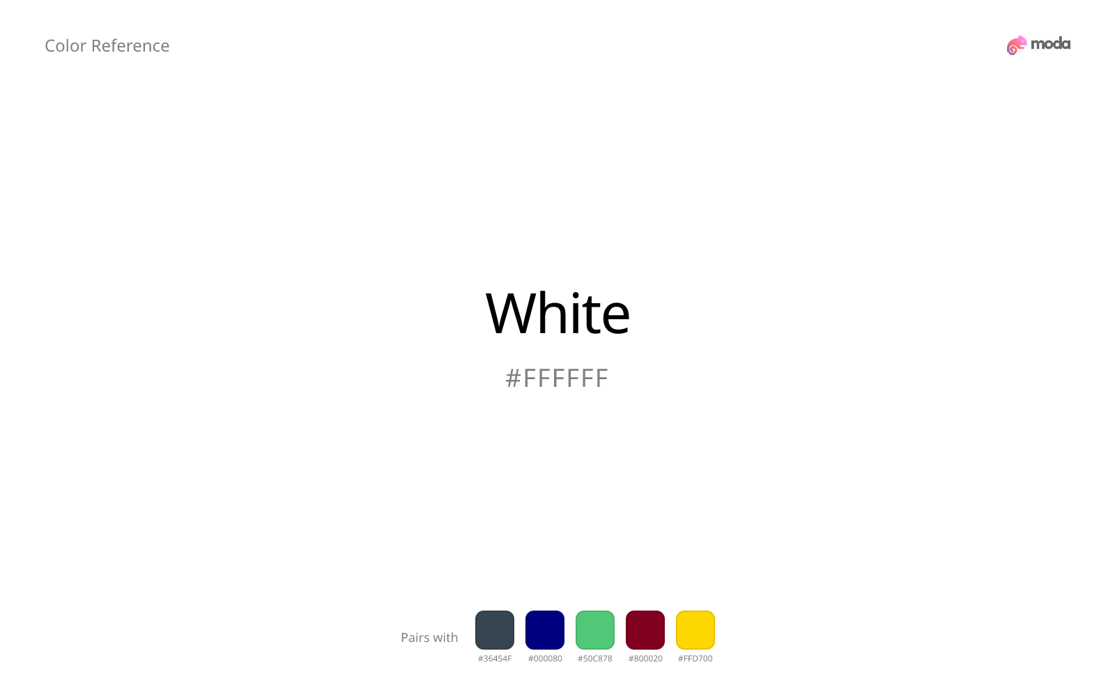 White is the foundation of clean, modern design. It is the default background for documents, slides, and web pages. In color theory, white reflects all wavelengths of visible light.
