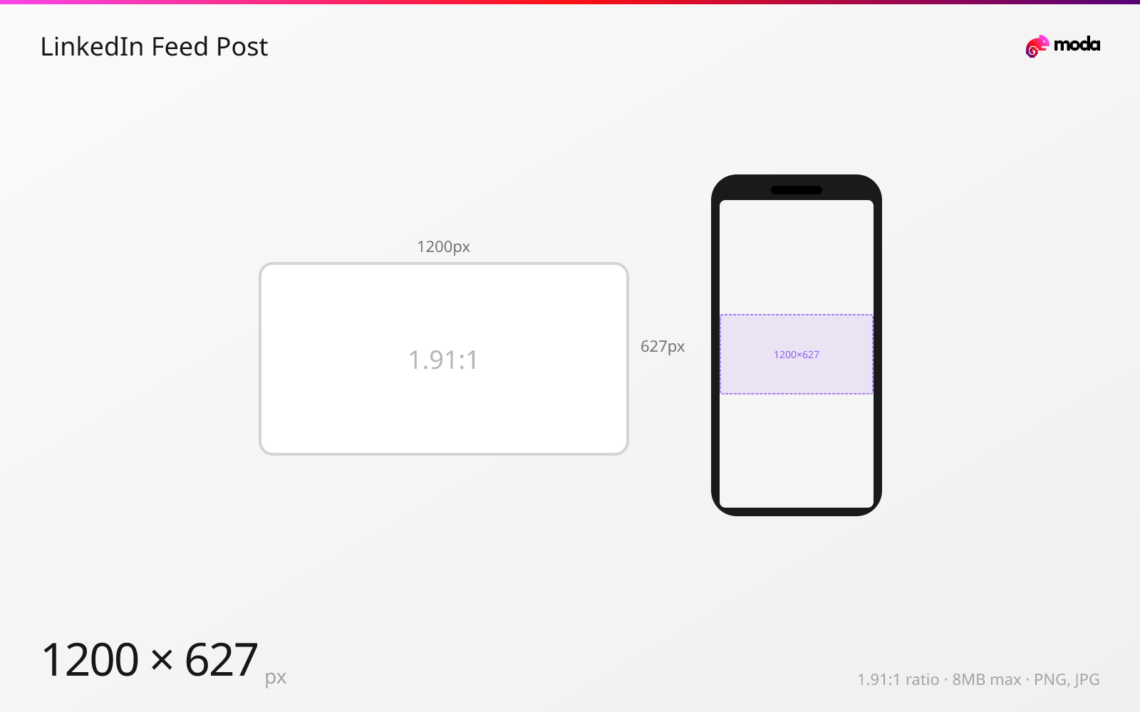 The recommended LinkedIn feed post size is 1200 × 627 pixels (1.91:1 aspect ratio).