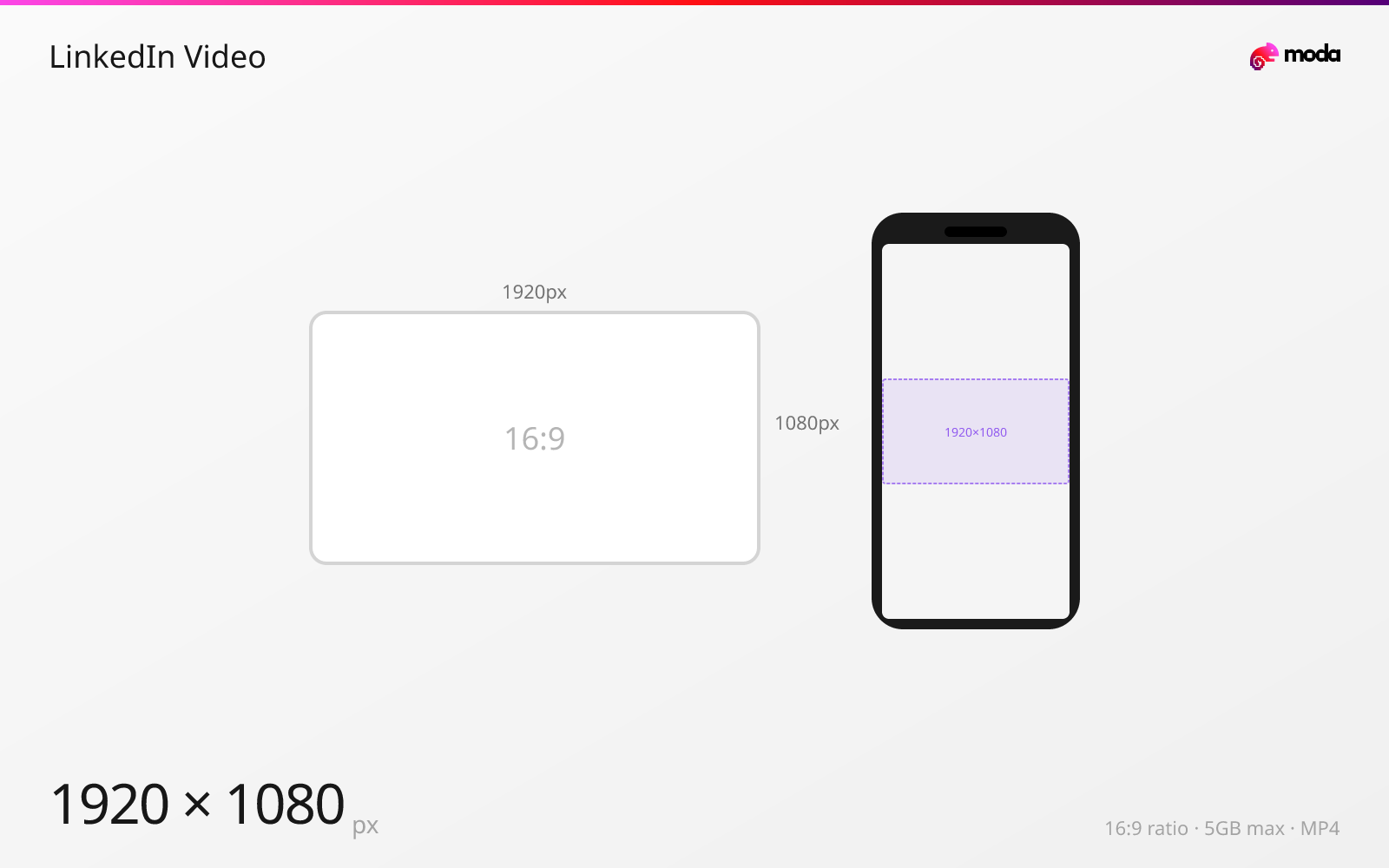 The recommended LinkedIn video size is 1920 × 1080 pixels (16:9 aspect ratio).